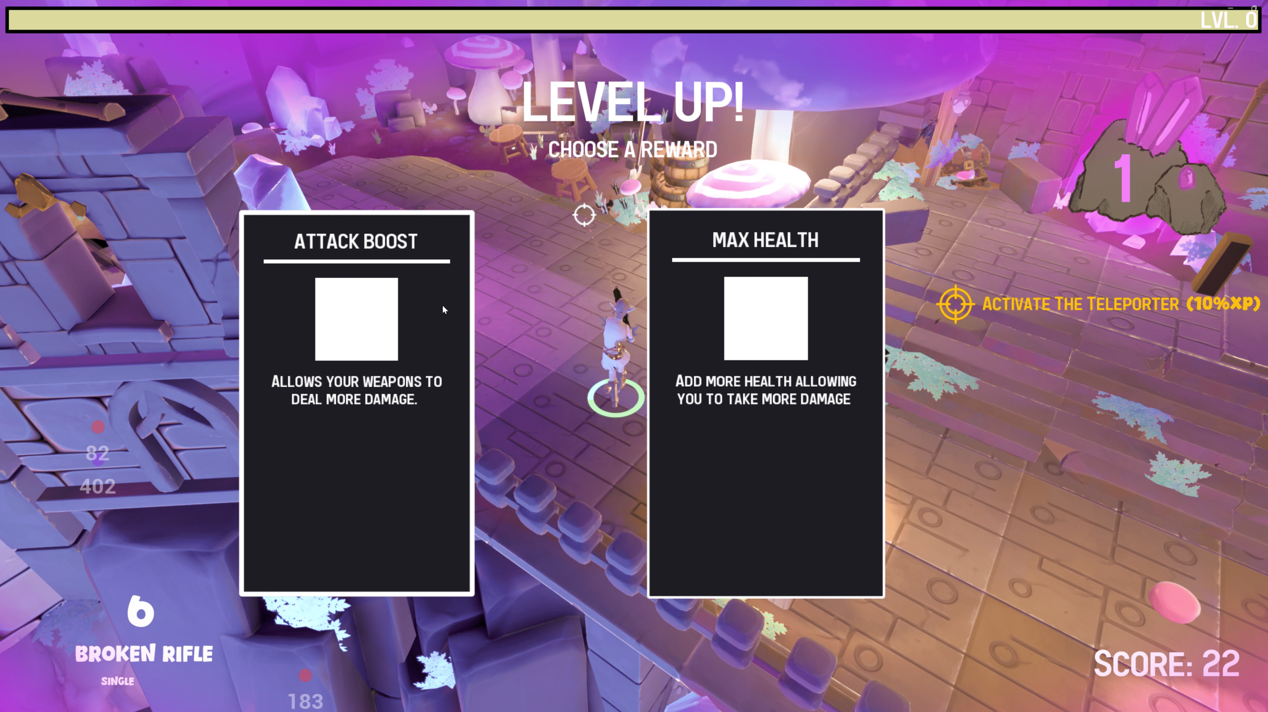 My biggest contribution to the project was the games menu systems, which I primarily was in charge of designing and implementing with some occasional assistance from the wonderful tech team. This included all of the games various player facing menus (Start, Pause, Settings, etc.…) as well transitional screens such as the games loading and game over screens, as well as the games upgrade cards, which I was in charge of getting publish ready ahead of launch.